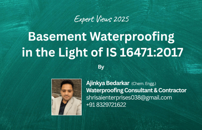 October 20, 2025 Basement Waterproofing in the Light of IS 16471:2017 Ajinkya Bedarkar (Chem. Engg.)Waterproofing Consultant & Contractor Basements, being below ground level, face constant exposure to moisture, hydrostatic pressure, and seepage.